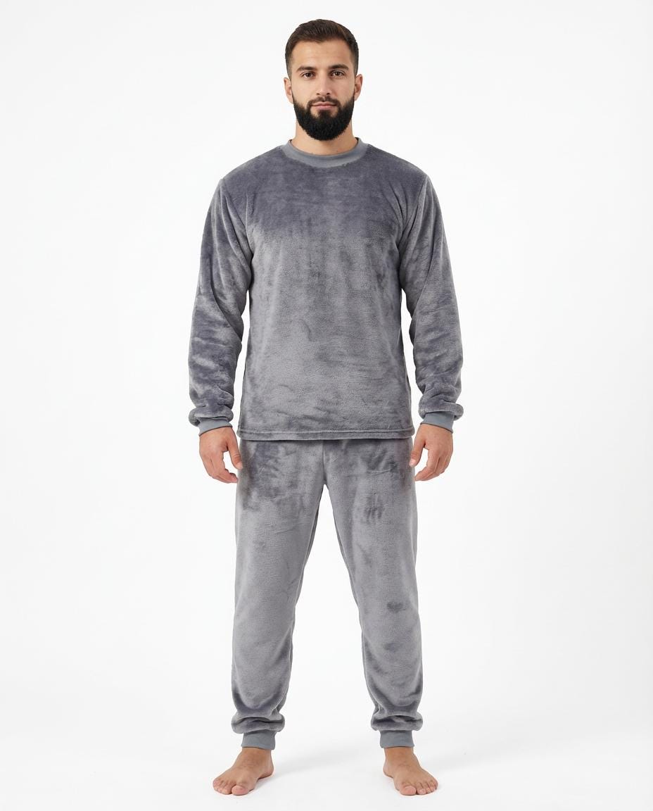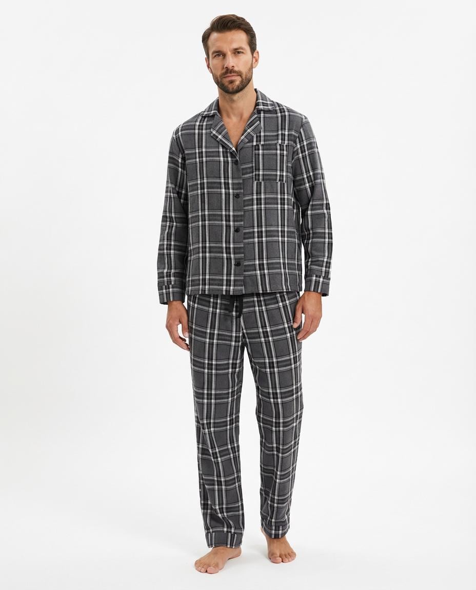 Men’s Grey Flannel Pajama Set – Long Sleeve Shirt & Pants with Pockets