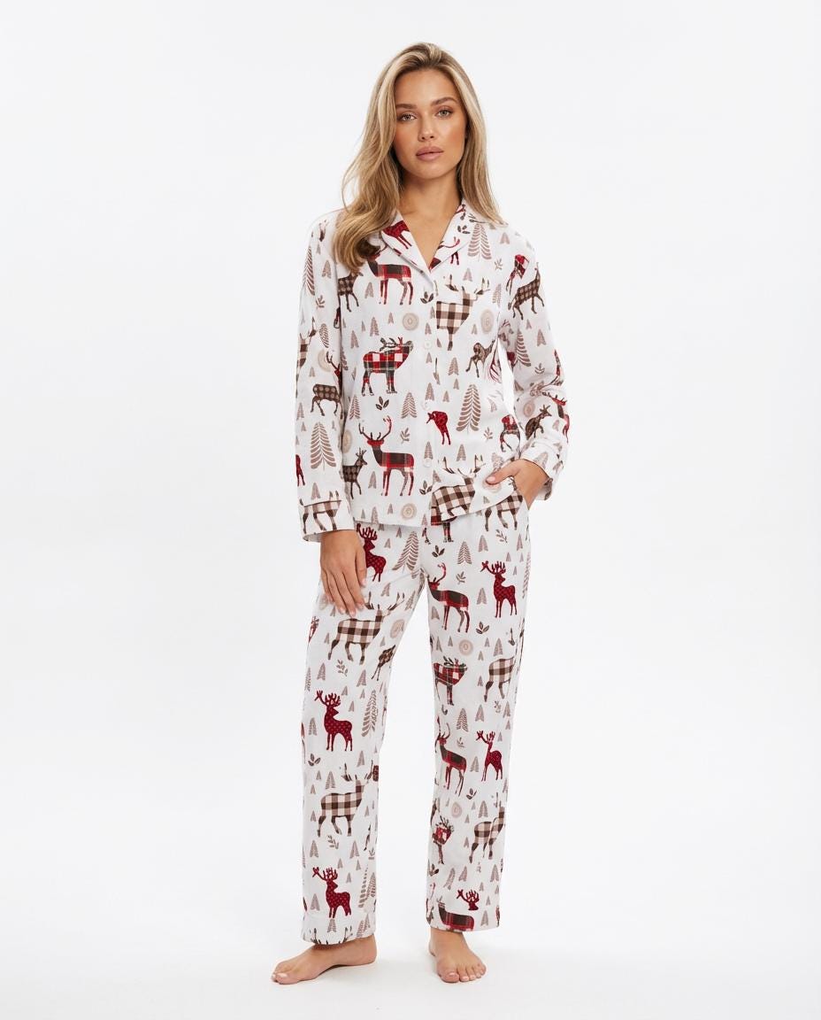 Women`s Pajama Set with Reindeer Print