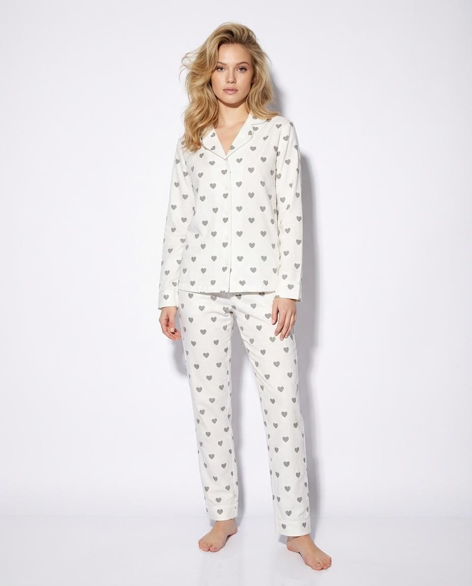 Women's Pajama Set in Heart – Button Up Shirt & Pants