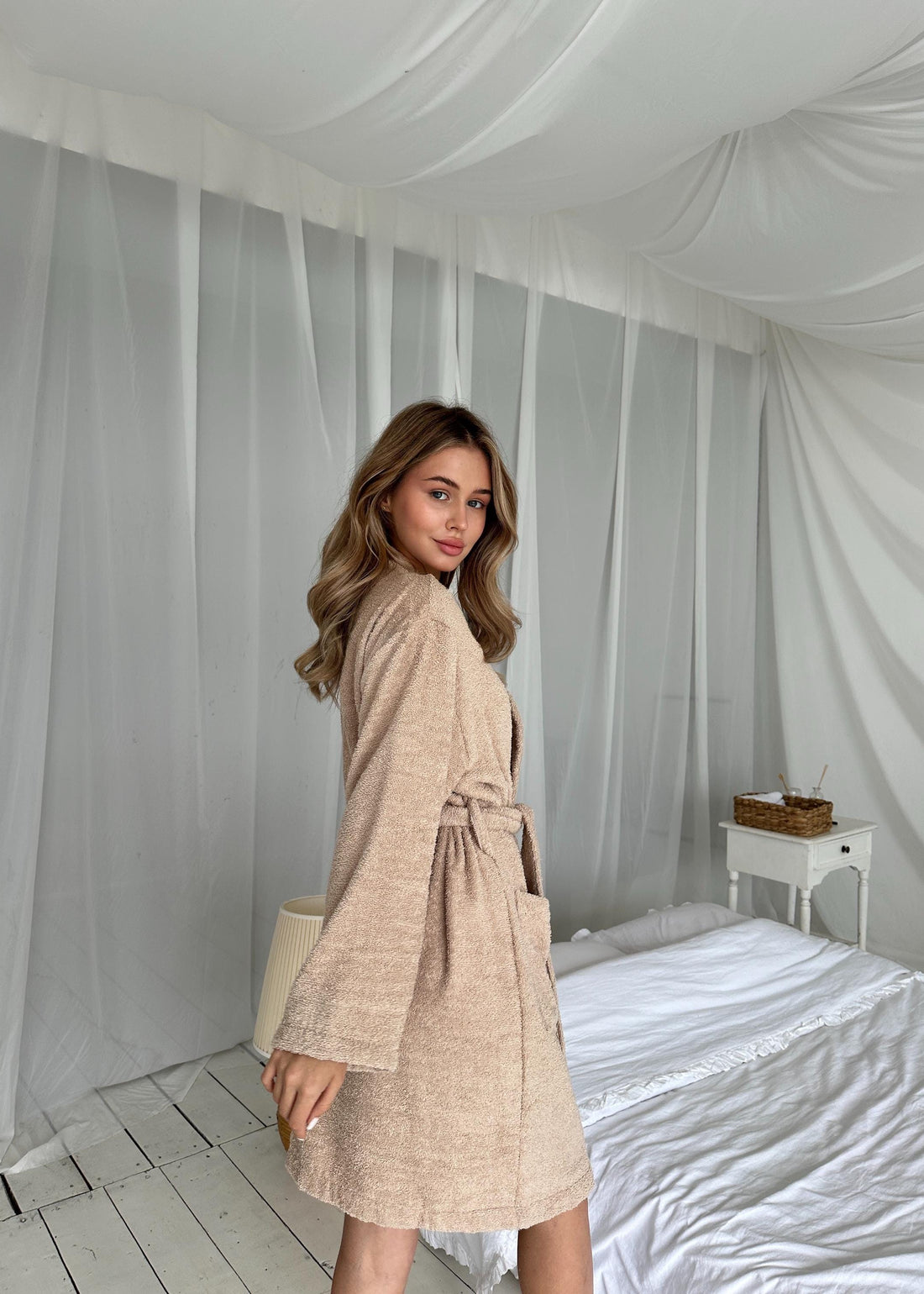 Women’s Beige Bathrobe with Longsleeve