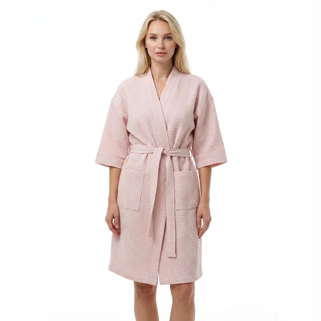 Women's Powder Pink Waffle Cotton Robe
