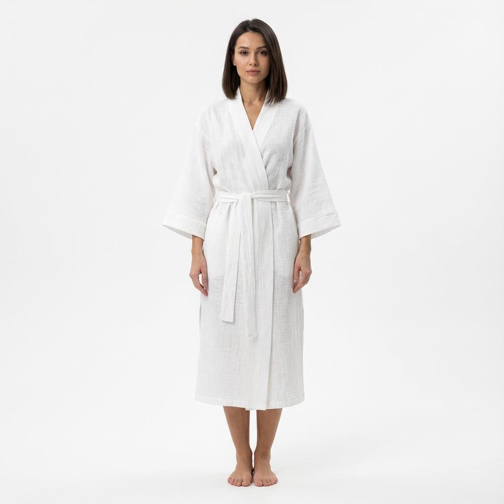 Women's White Muslin Kimono Robe